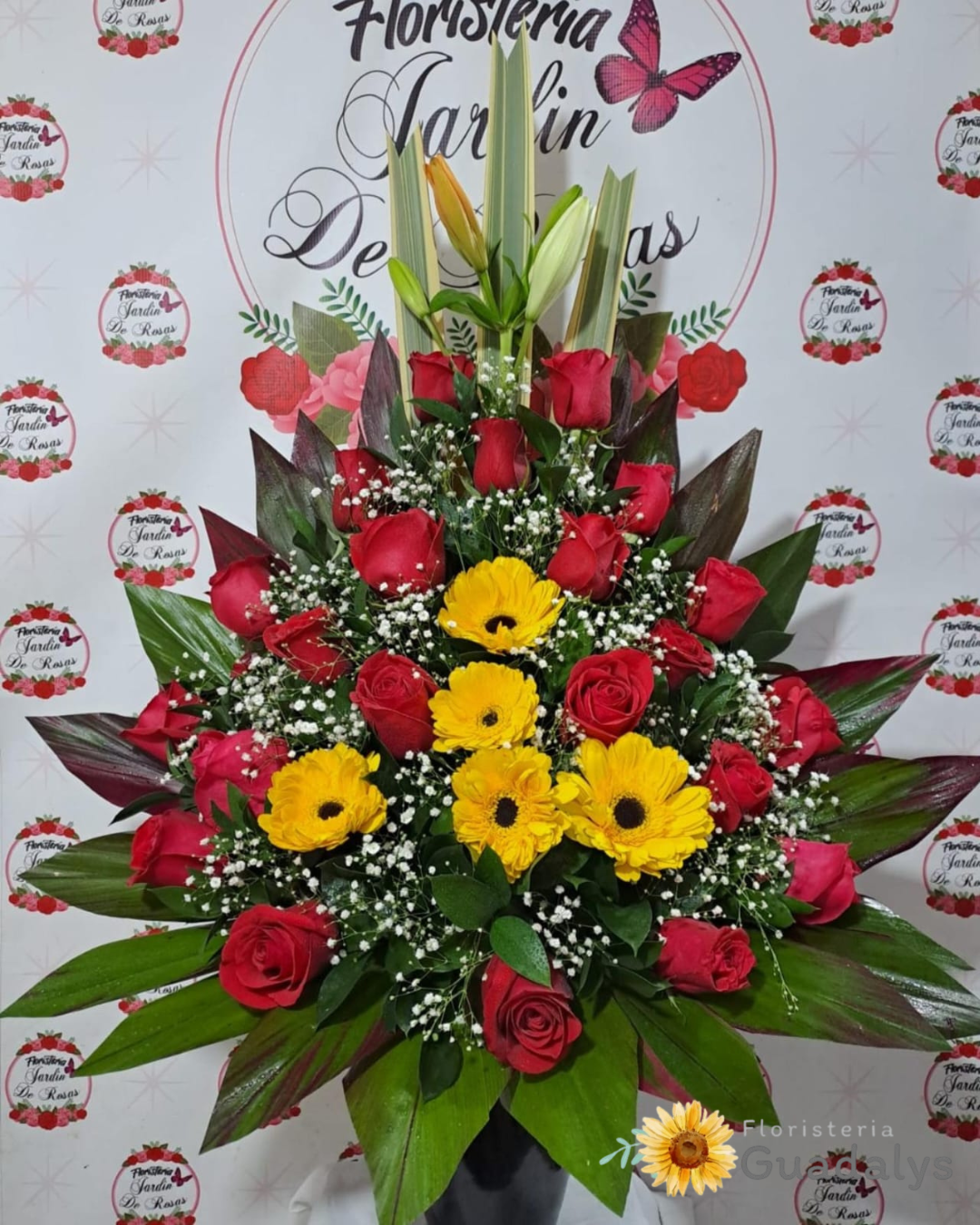 Los elementos que componen el diseño floral tales como, bases, adornos, cajas, vinos, chocolates, globos, peluches, flores, frutas y colores, pueden diferir de la imagen de referencia, y estos están sujetos a cualquier cambio que se requiera según la disponibilidad, sin embargo hacemos nuestro mejor esfuerzo para complacer a nuestros clientes aún en los más mínimos detalles.