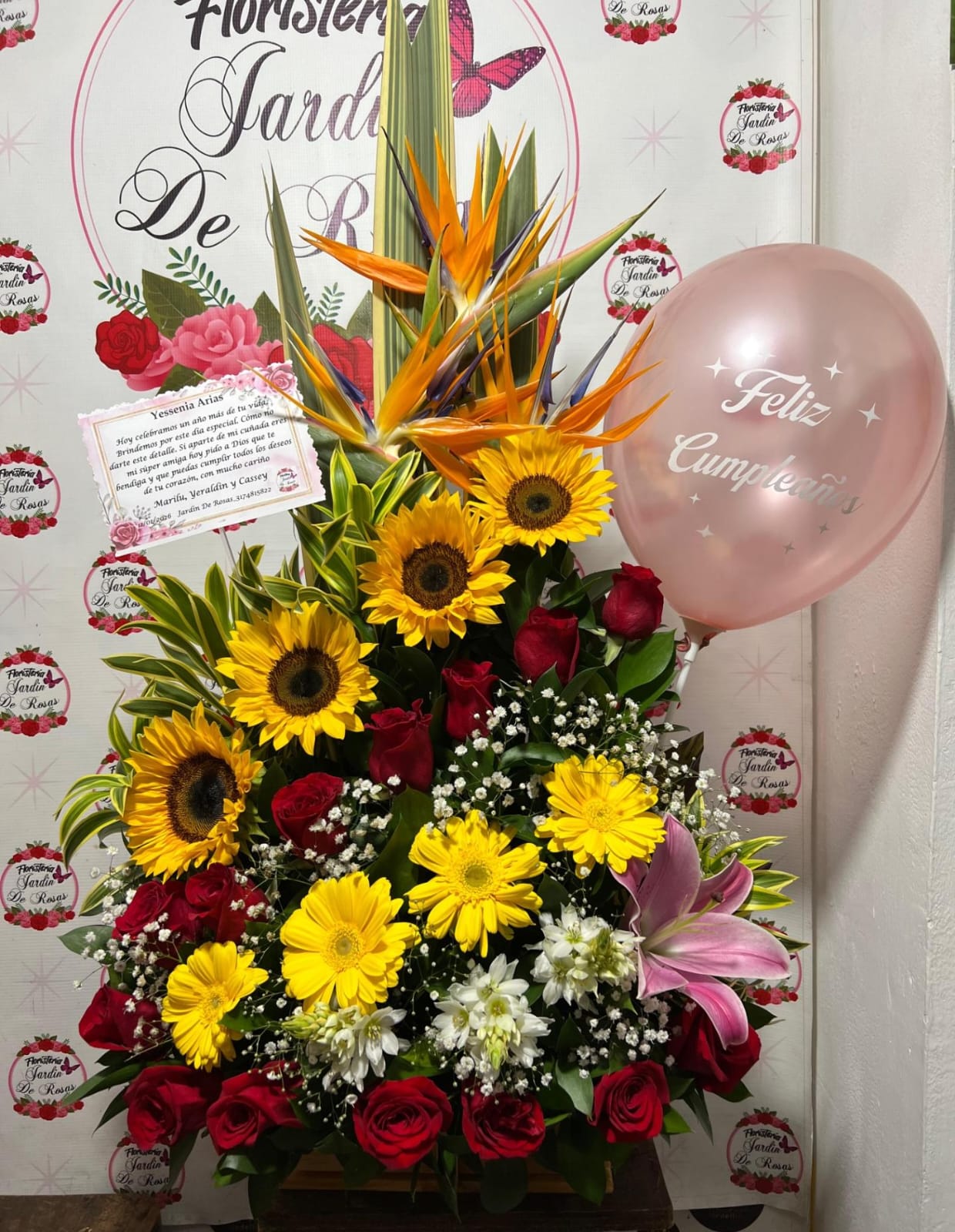 Los elementos que componen el diseño floral tales como, bases, adornos, cajas, vinos, chocolates, globos, peluches, flores, frutas y colores, pueden diferir de la imagen de referencia, y estos están sujetos a cualquier cambio que se requiera según la disponibilidad, sin embargo hacemos nuestro mejor esfuerzo para complacer a nuestros clientes aún en los más mínimos detalles.